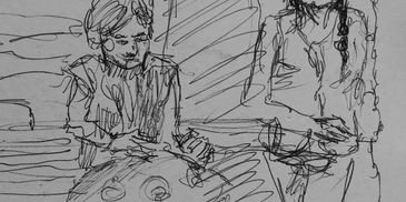 Sketch of Ibni Rocks busking in Wells. (Artist: Steve Rivers)