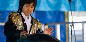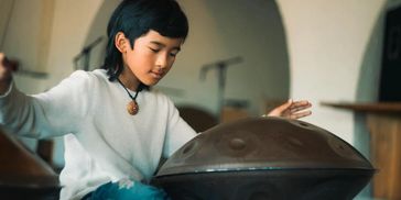 Ibni Rocks plays the handpan at Wild Naya Hanpan Summer Academy, Austria, 2023